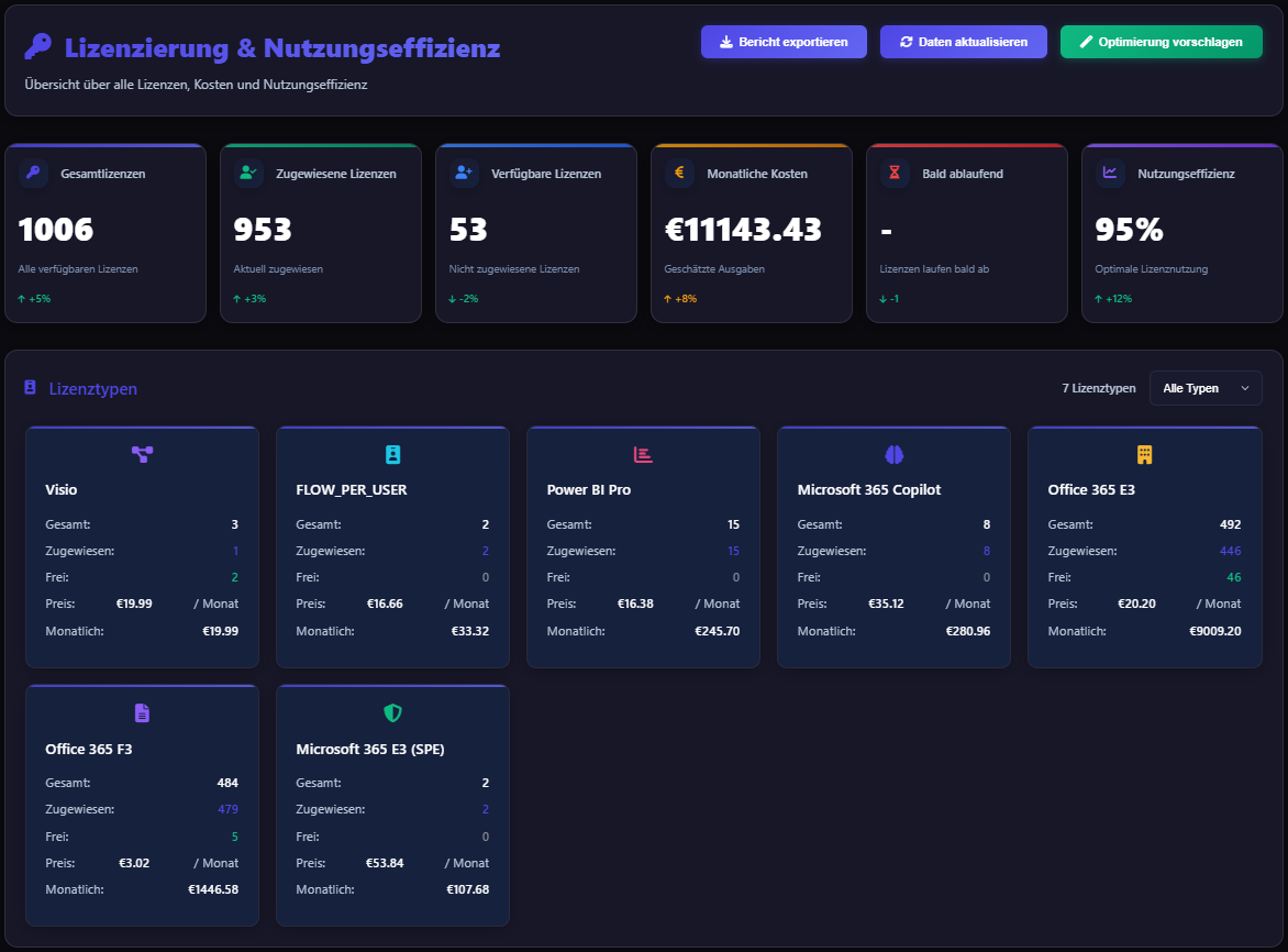 Die integrierte Lizenzanalyse zeigt, welche Benutzer ihre Microsoft 365 Lizenzen vollständig nutzen – und wo Sparpotenzial besteht. Damit vermeiden Sie unnötige Kosten.